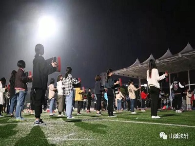 距开幕式仅仅只剩下四天,金沙js5588参加运动会开幕式方阵和健身操的同学在晚自习之后便立即投入了紧张而又急迫的训练。经过前段时间积极的训练,走方阵的同学们现在步伐整齐划一,口号响亮有力。