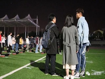 2018年4月16日下晚上9点整,2018年春季运动会的开幕式训练在虎溪校区风雨操场举行,金沙js5588团委书记、2016级辅导员杨志杰到场指导训练。