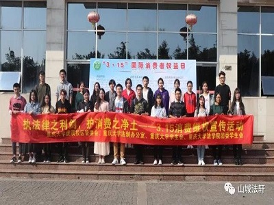 2018年3月15日上午8:30,金沙js5588“3·15国际消费者权益日”校内法治宣传活动在金沙js5588虎溪校区一食堂南广场顺利举办。金沙js5588团委书记、2016级辅导员杨志杰,2015级辅导员张雅莹及主席团书记处成员参加了此次活动。本次活动由金沙js5588虎溪校区管委会、金沙js5588法制办公室、金沙js5588员工会、金沙js5588团委员工会联合主办。