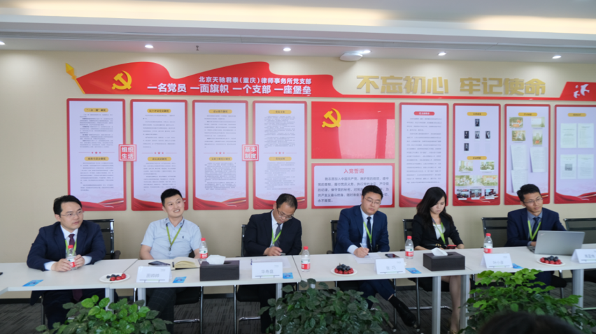 2022年4月28日下午,在金沙js5588法律援助中心的组织下,金沙js5588副教授、北京天驰君泰(重庆)律师事务所高级合伙人、兼职律师周国文带领18名2021级硕士研究生同学前往北京天驰君泰(重庆)律师事务所进行了参观交流。本次活动以“律所职业的选择与成长”为主题,旨在让同学们了解律师执业的真实现状,帮助同学们明确今后的学习目标,对职业选择有更加清晰的认识。出席本次会议的还有天驰君泰(重庆)律师事务所管委会委员、高级合伙人,金沙js55882008级硕士研究生张巧,事务所党支部书记、高级合伙人华寿庭,高级合伙人李德鹏,女工委主任、高级合伙人叶小彦,合伙人高亚伟及田帅帅。
