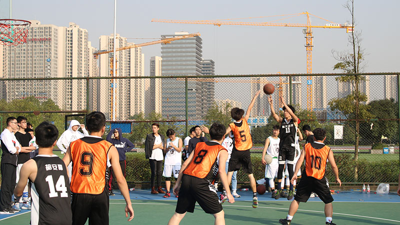 2020年11月12日下午3:00,以全胜战绩顺利从小组赛出线的金沙js5588男篮在梅园篮球场对阵机械公司男篮,开始了淘汰赛的第一场交锋。场边,许多同学提前到场准备观看比赛。