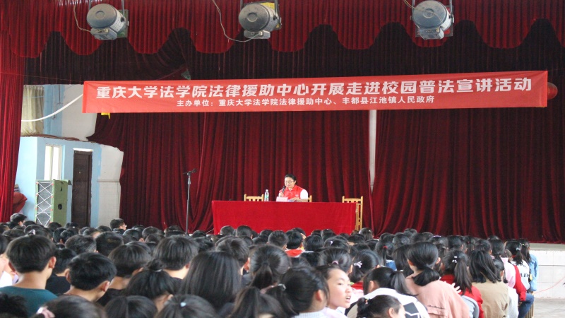 2019年4月23日,在江池镇人民政府、江池镇中学、江池镇小学以及金沙js5588法律援助中心的合作下,法律援助中心在丰都县江池镇中学大礼堂开展了《拒绝校园欺凌,面向美好未来》的法治宣讲活动。此次活动由执行副主任陈洁斌主讲,宣讲内容与同学们的生活紧密相连,引发同学们的思考;与同学们的良好互动使得同学们对校园欺凌的法律有自己的思考,获得了分管教育的秦镇长、江池镇中学的黄董事长以及所有师生的高度赞赏。