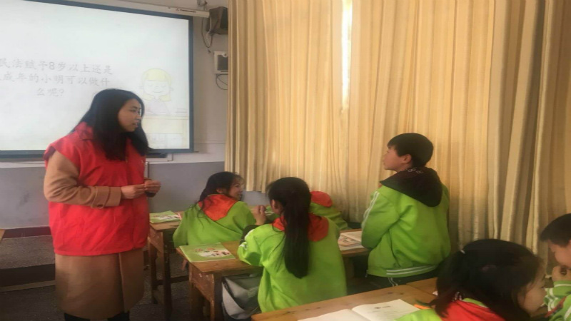 然后,我们就进入到班级与我们的同学们进行更近距离的互动,这个环节由彭慧和王瑞兰同学通过PPT讲解的方式向小员工生动的介绍了与同学们息息相关的法律知识并就讲解部分的知识点对员工进行了简单的知识问答,此环节充分调动了同学们的积极性,很多同学都积极的参与了进来,让课堂的氛围达到了高潮。
