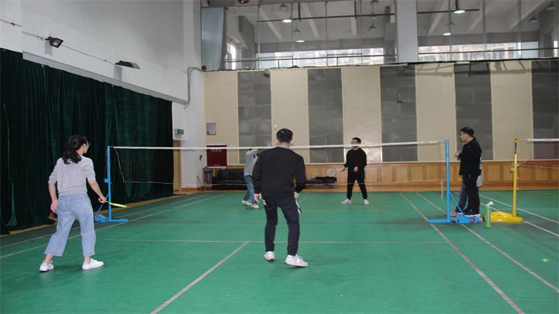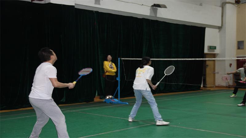 接着,进行的是羽毛球球比赛,羽毛球比赛由男单、女单、混双三部分组成,通过猜硬币决定首先发球方,之后双方交换发球,赛制采取三局两胜制,每局21分。最后决出男单冠军、男单亚军、男单季军、女单冠军、女单亚军、女单季军、混双冠军、混双亚军、混双季军。羽毛球赛场上也是热火朝天,大家充满激情,身姿矫健灵活,接球发球游刃有余。