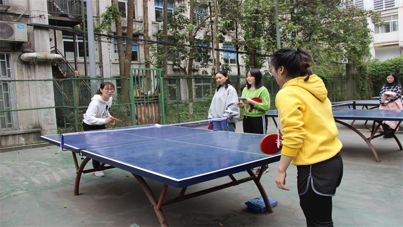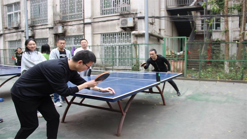 首先,进行的是乒乓球比赛,乒乓球比赛由男子单打、女子单打两个部分组成,通过猜硬币决定首先发球方,双方交换发球,采取三局两胜制,每局11分。最后决出男单冠军、男单亚军、男单季军、女单冠军、女单亚军、女单季军。乒乓球比赛进行得如火如荼,参赛选手挥洒激情,酣畅淋漓。