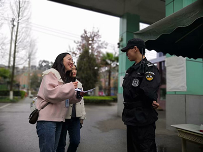 活动开始前,志愿者们在一食堂南广场集合,明确相关采访要求与活动组织纪律。八名志愿者分为四组,以小组形式分别采访门卫小哥、宿管阿姨、食堂阿姨和送水大爷。受访者们在采访中表示,虽然平常工作时间长,工作强度大,工作内容比较繁琐,但为了生活和同学们的笑脸,愿意一直干下去。门卫小哥以朴实无华的话语表达了他忠于职守的工作态度,宿管阿姨微笑回忆与同学们的愉快相处,食堂阿姨表达让同学们三餐健康营养有保障是她们的共同心愿,送水大爷则与我们分享了工作中师生给他带来的感动点滴。他们表示会时刻牢记服务意识,秉持雷锋精神,更好地为全校师生服务。最后他们希望全校教师员工们身体健康、好好学习与工作,也希望大家一起行动,传承雷锋精神,共创和谐校园。