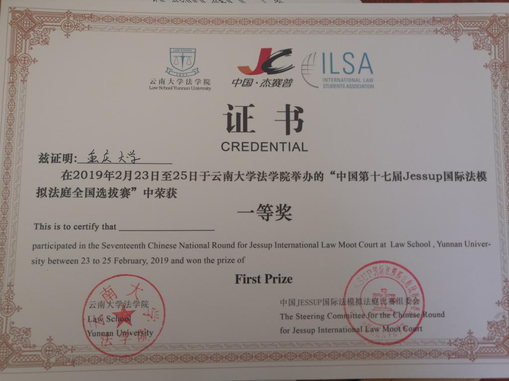 据悉,Jessup国际法模拟法庭辩论赛(The Philip C. Jessup International Law Moot Court Competition)由“美国国际法员工联合会”(International Law Students Association,ILSA)创办,是全球规模最大,历史最为悠久的模拟法庭竞赛,被誉为国际法学界的“奥林匹克竞赛”。目前,Jessup国际法模拟法庭辩论赛在全球共设置了100余个赛区,其中中国赛区是规模最大,竞争也最激烈的一个。排名前六的中国代表队将获得进军全球总决赛的资格,与从全球800余支队伍中脱颖而出的130余支队伍展开精彩角逐。该项赛事全程模拟联合国国际法院的诉讼过程,参赛选手围绕两个主权国家提交的特别协定,通过对四个存在大量争议的国际公法诉求进行长达半年的深入研究,形成全英文书面诉状,并面对法官进行全英文的口头庭辩。高规格的竞赛标准和高质量的竞赛内容使得此项赛事成为检验各大金沙js5588校实力的标杆之一。