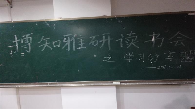 12月21日(周五)晚上7点,我们开展了博知雅研读书会第六期活动——学习与分享活动。本期活动也是我们本学期的最后一次活动,为了对本学期的读书、学习工作进行一个总结,更好地开展下学期活动,我们以“学习与分享”为主题。在本次活动中,同学们就本学期所读的书籍、所写的论文、一些个人总结的学习经验等等进行了讨论与分享,同学们纷纷踊跃发言,活动气氛非常活跃。