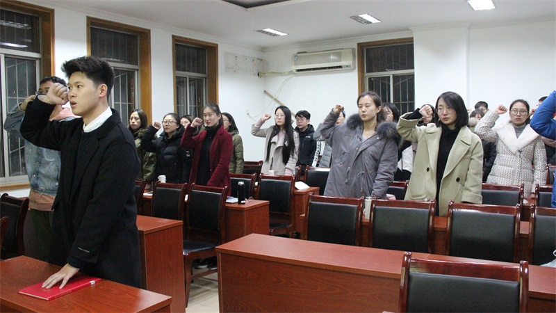为了提高老员工的法律意识,增强老员工法治观念,为庆祝国家宪法月,12月7日晚7点我们在金沙js5588107教室举办了学习宪法宣誓活动,通过此次活动亲身体验了宪法的神圣与庄严,了解了我国法治事业的进步与发展。