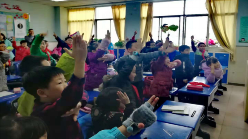 在掌握了基本的法律知识后,同学们终于迎来了最期待的“有奖知识竞答”环节。此时,同学们早已在座位上摩拳擦掌、跃跃欲试。当志愿者宣布答题开始时,班上的同学们几乎齐刷刷地举起自己的手来,后面的同学担心志愿者看不到自己举手,便奋力把手举高。无论对错,每个同学都积极参与,他们这种不惧失败的勇气值得每一位成年人学习!