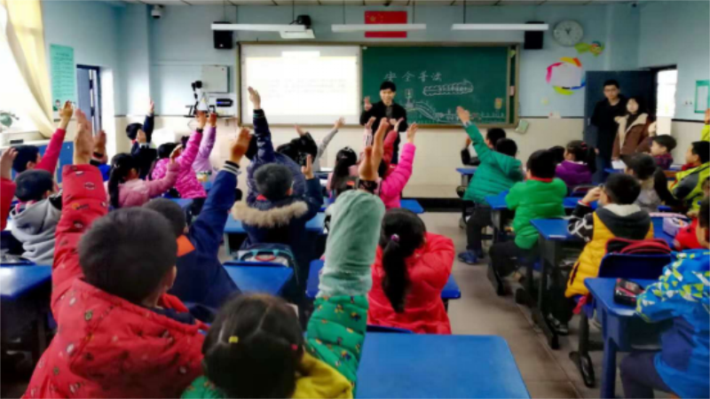 在“法律知识讲解”环节中,志愿者首先从上海世外小学砍人案入手,告诉同学们校园暴力的残酷性。面对这类情况时,要跑、报警、躲藏、反击,避免使自己成为下一个受害者。与此同时,由于校园暴力会对他人造成伤害,严重的还要承担相应法律责任,同学们应当注意举止文明,切忌成为下一个施暴者。