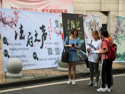 2018年4月22日始,为期两天的金沙js5588 “法府之声”演讲比赛线下宣传活动在虎溪校区一食堂、二食堂同时进行。“法府之声”演讲比赛由金沙js5588和西南政法大学经济金沙js5588联合主办,面向金沙js5588全体在校本科生。