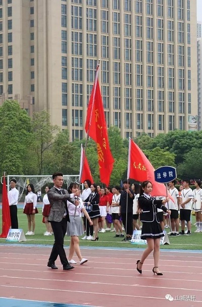 上午9:30,本届春季运动会的开幕式正式开始。首先,各公司进行队列方阵表演。金沙js5588方阵队列以整齐的步伐和色彩鲜艳的服装向全场观众展现了金沙js5588学子朝气蓬勃的精神面貌。宪法法条封面的标牌、响彻云霄的口号——“重大法学,追求卓越,扬帆起航,再创辉煌”与靠近主席台一侧由身穿法袍的大二学子组成的队列相辉映,展现出金沙js5588严谨却不失人文情怀的公司精神。队列最后一排高举的“依法治国”标牌更加凸显出金沙js5588“遵纪守法、心系国家”的育人理念。