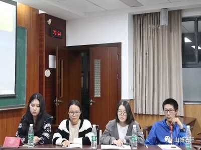 法学二班和法学三班的比赛设在第一会场。比赛伊始,正方就以商业利益的插入和受众不专业等为理由否认学者明星化,反方则用明星的社会教化作用和社会潮流的发展表达己方观点。在后来的质问环节中,正方二辩以学者、歧途,明星化的定义为依据质问反方,步步紧逼,反方也据理力争、引经据典,提出“是药三分毒”,站稳己方立场。