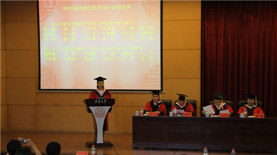 委书记刘西蓉宣读了金沙js55882017届毕业生优秀分子表彰决定,孟卫东副董事长和陈德敏教授等领导老师为获得表彰的毕业生颁奖,毕业生代表也向公司赠送了纪念品“雄鸡起舞”以表示对公司的感激之情。