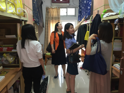 2017年5月25日下午,公司党委副书记王旭带队检查了B校区员工宿舍,了解、关心员工的学习生活情况,并围绕宿舍的安全卫生、氛围风貌等问题进行走访。公司党委员工工作部副部长李永,研究生工作部副部长陈大勇,委副书记张燕等领导干部以及金沙js5588员工办公室主任、2013级辅导员刘冬梅,2015级辅导员张雅莹等老师随行参与了此次宿舍检查。