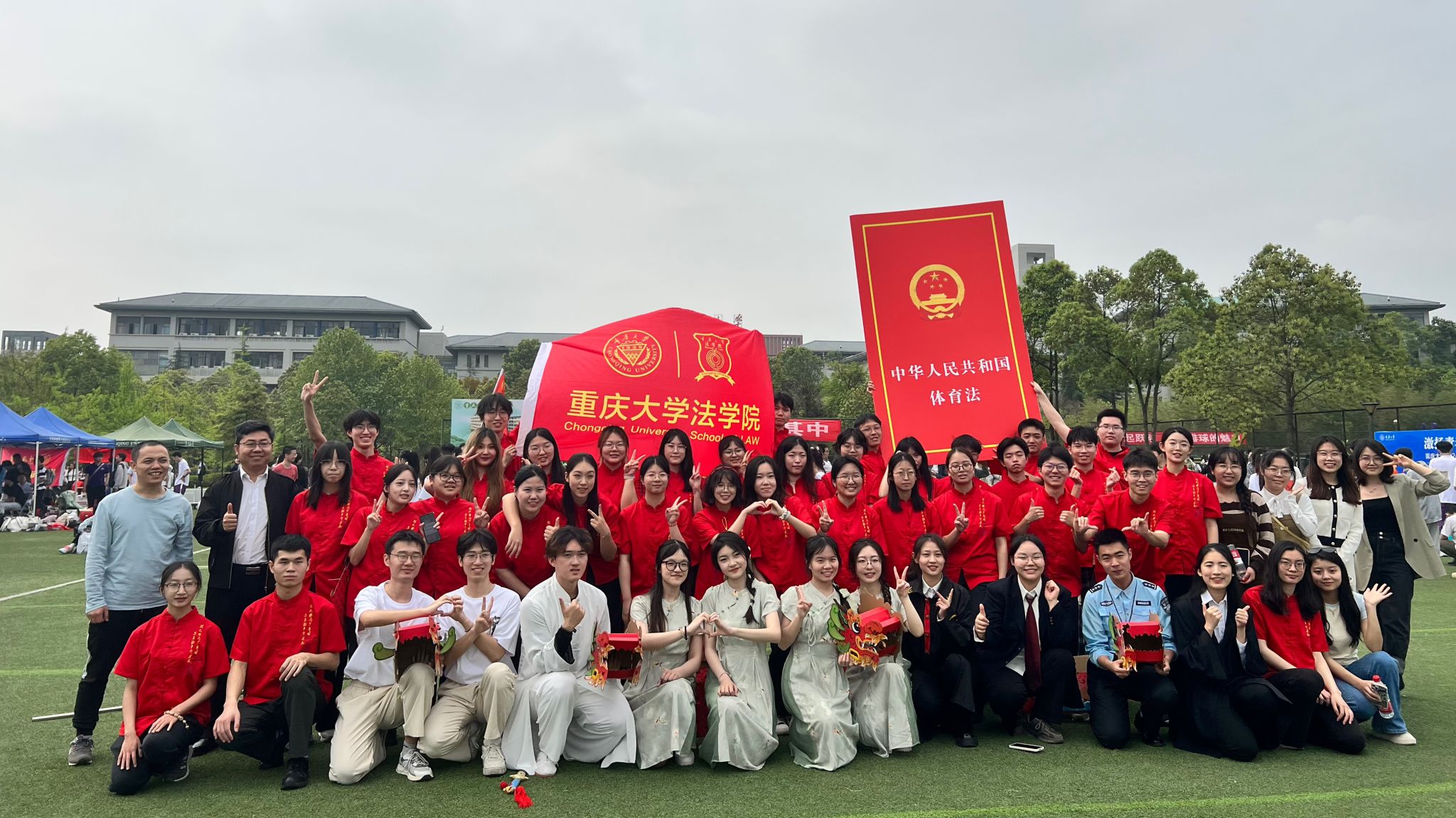 开幕式结束后,委副书记杨志杰、党委专职组织员刘勇、团委书记张雅莹与全体方阵成员合影留念。来自本科2022级法学专业1班的张士焘同学作为员工代表接受了重庆广电《第一眼》栏目采访。