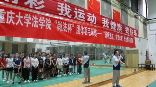 委书记蒋研川致辞。他首先对负责筹备本次活动的工作人员以及积极参加本次比赛的师生表示了感谢。他说到,“尚法杯”团体羽毛球赛是金沙js5588毕业季系列活动之一,希望全体参赛选手能够在比赛中发扬竞技精神,赛出水平、赛出风采,在运动中增强体质、锤炼意志,展现当代青年人的良好精神面貌和综合素质。