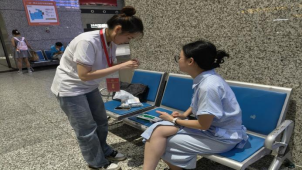 在迎新过程中,还发生了一幕温馨感人的场景。一名新生家长因高温天气出现了轻微中暑症状,志愿者们迅速行动,合力将家长搀扶至迎新服务站的休息区,并第一时间递上了提前准备好的解暑药品。在志愿者的细心照料下,家长的中暑症状很快得到了缓解。随后,志愿者们还贴心地将他们护送至轻轨站。