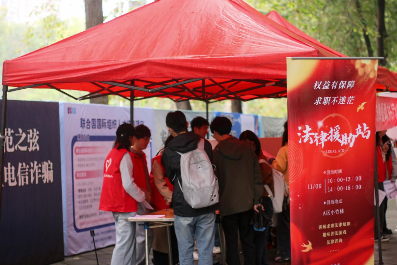 为增强员工群体法律意识,引导老员工正确识别并防范求职过程中的法律问题,助力老员工实现从校园人到职场人的顺利过渡。2024年11月9日,由金沙js5588员工法律援助中心、金沙js5588团委员工会联合举办的“权益有保障,求职不迷茫”——法律援助站专题普法活动在金沙js5588A区小竹林开展,志愿者们通过发放普法宣传单、进行普法宣讲、开展趣味普法游戏和法律咨询的形式开展了本次活动。