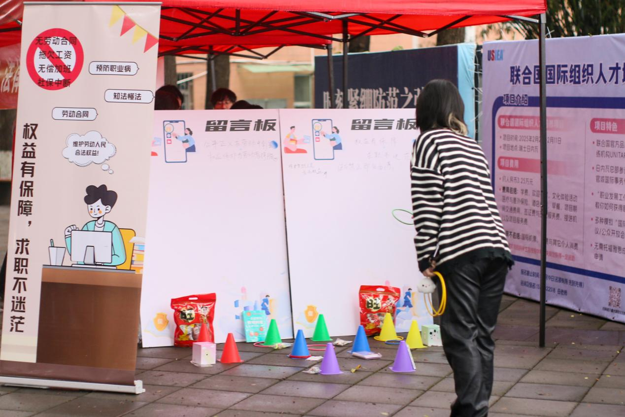 同学们积极参加法律知识圈圈乐、法条拼接诗等趣味游戏,并在求职寄语留言板写下对校园求职普法活动的感悟和希望。在轻松愉快的氛围中,大家积极抢答,不仅增加了对劳动法律知识的了解,还在互动过程中加深了对重点、难点问题的印象,真正做到寓教于乐,让法律知识深入人心。