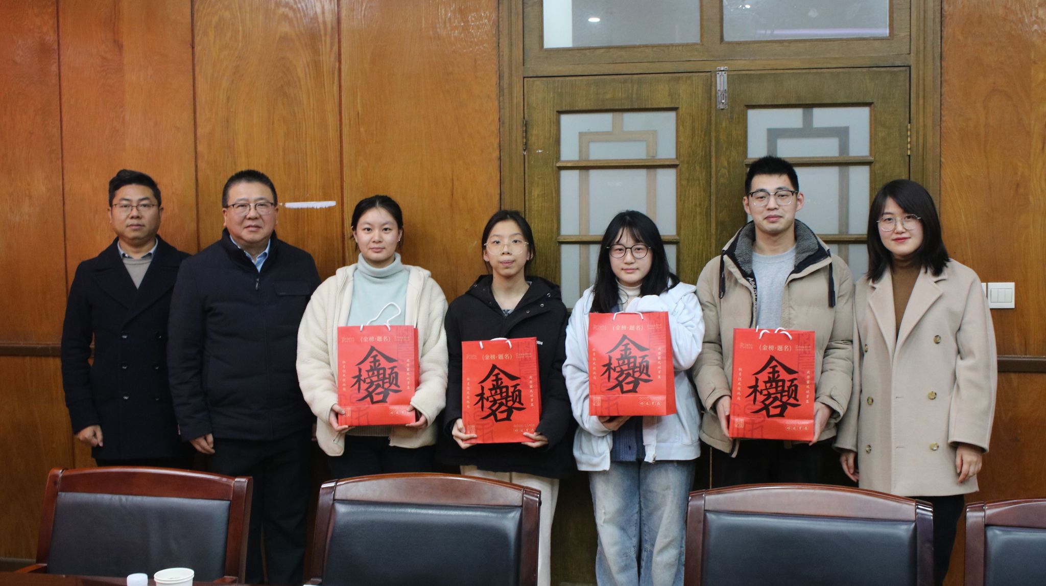 慰问会上,蒋研川、杨志杰、张雅莹向同学们发放了公司精心准备的暖心大礼包,大礼包上印有“金榜题名”“前程似锦”“成功上岸”等祝福语,表达了公司对于同学们“考试顺利、一站成‘硕’”的殷切期许。大礼包中不仅包含牛奶、坚果、水果、面包、蒸汽眼罩、防寒贴等实用丰富的学习生活物资,还有一封由辅导员亲笔撰写的长信,给予同学们无微不至的体恤关爱。