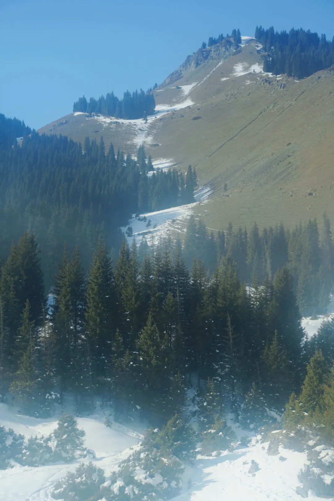 这张照片拍摄于重庆周边的山体公园,冬天气温骤降,整个世界被白雪笼罩,重庆不是一个经常下雪的城市,但是在周围的山体公园,竟然有幸看到了白雪堆积,其中绿树与茫茫的白雪相得益彰,给沉闷的冬天增添了许多的生机,像是冬与春的碰撞,整个照片并不以十足的清晰为展现方式,反而采用略显模糊的表现手法,这模糊像是冬天的迷雾,是在冬天热气与寒冷气温所产生的化学反应,更让整个照片展现出专属于冬天的梦幻与浪漫,如果大家看过《情书》这部冬季经典电影的话,可能会在这张照片中感受到她们相遇的每一个时刻的幸福,冬季是神秘的,是模糊的,但也是温暖的,是浪漫的季节,希望大家能喜欢这张冬日照片。