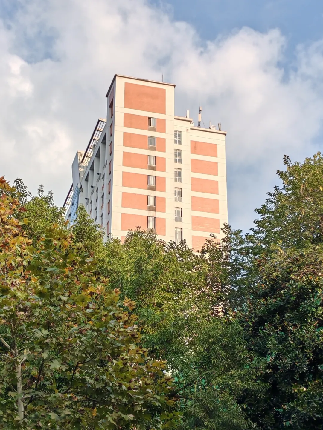 重庆的冬天总是云雾绵绵,因此晴天显得格外难得。在某个难得的晴日,路过二综,用手机拍下了蓝天白云下的二综,非常治愈。