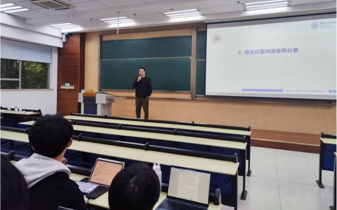 刘勇分享了同学们在2024年取得的成绩,肯定了大家一年来的努力与成长。他提醒了期末考试注意事项,强调要严肃考风考纪,坚决杜绝考试违规违纪。刘勇对期末放假和开学安排做了布置,特别强调了安全问题,涉及的内容包括宿舍管理、预防诈骗、网络安全、国家安全、交通安全等。他还介绍了2024年同学们的发展入党情况,希望同学们要积极向党组织靠拢。最后,他表示,2025年将是同学们最关键的一年,每个人都要为自己的前途去努力,希望同学们多和辅导员老师、班主任老师及学长学姐等沟通交流。最后,他希望大家要坚持锻炼,注意身心健康,并祝愿同学们期末考试取得好成绩。