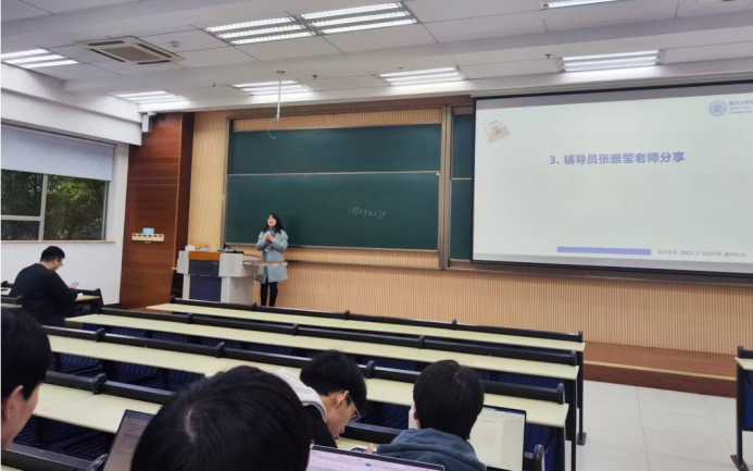 张雅莹分享了本科2021级学长学姐的保研“捷报”与法考“喜讯”,介绍了他们在保研和准备法考方面的经验。她鼓励大家要认真思考个人发展,多与老师进行沟通。