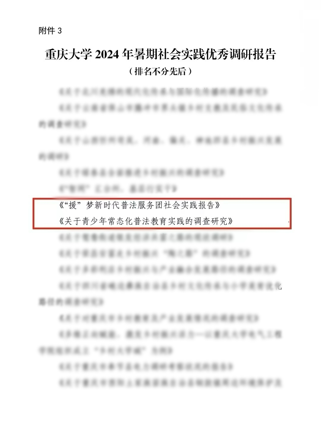 金沙js5588获评“优秀组织单位”荣誉称号,“援梦新时代实践团”荣获“优秀团队”荣誉称号,“援梦新时代”项目与“打造常态化青少年趣味普法教育课堂”项目获得“优秀项目”荣誉称号,《“援”梦新时代普法服务团社会实践报告》和《关于青少年常态化普法教育实践的调查研究》调研报告荣获“优秀调研报告”荣誉称号,张雅莹老师荣获“优秀工作者”荣誉称号,张康琦等22名同学荣获“优秀个人”荣誉称号。