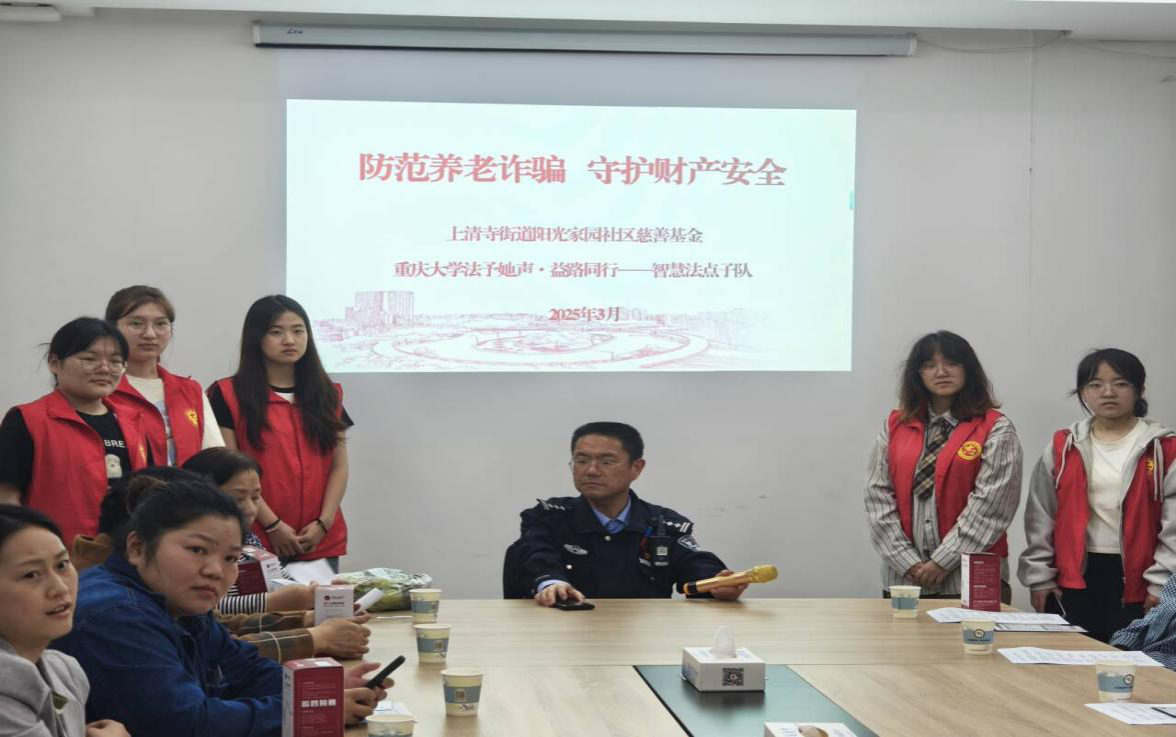 2025年3月27日下午,金沙js5588团委青年志愿者协会、员工法学会与渝中区春森路党群服务中心联合开展了“守护‘她权益’·防范养老诈骗与财产安全”主题普法活动。活动通过情景演绎、案例剖析、互动问答等多元化形式,为社区老年女性群体普及防诈骗知识,切实提升其安全防范意识,守护“钱袋子”安全。