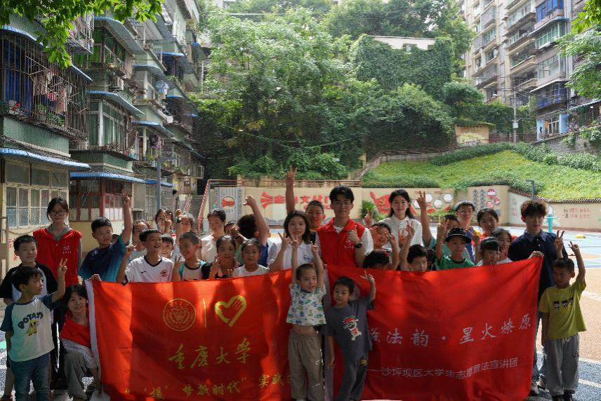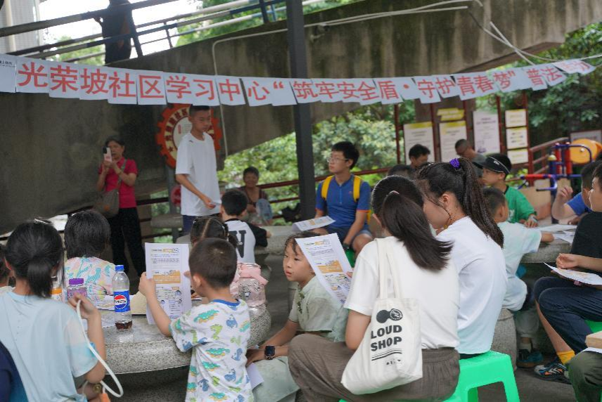 为增强未成年人网络安全防护意识和法律自护能力,筑牢暑期安全防线,2025年7月1日,由沙坪坝区司法局、沙坪坝区妇女联合会、金沙js5588“‘援’梦新时代”实践团联合主办的“筑牢安全屏障,法治守护青春”2025年暑期安全教育活动在石井坡街道光荣坡社区举办。活动通过典型案例警示、趣味互动游戏、沉浸式模拟法庭相结合的方式,为孩子们带来了一堂生动实用的法治实践课。